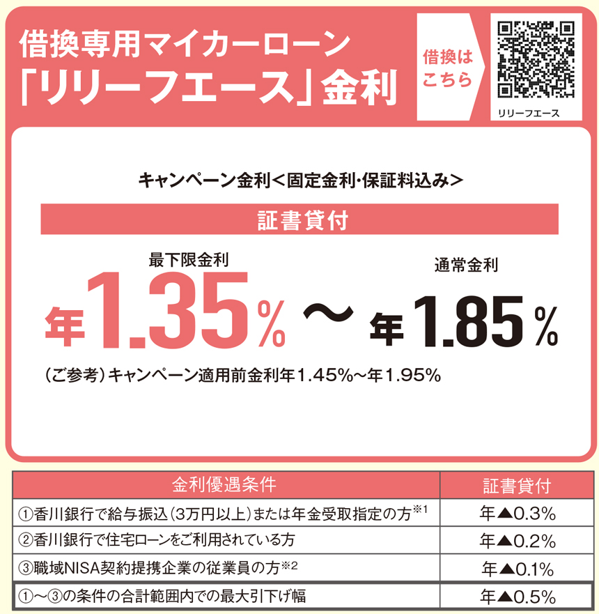 条件の合計範囲内で最大年▲0.5%お引き下げいたします。